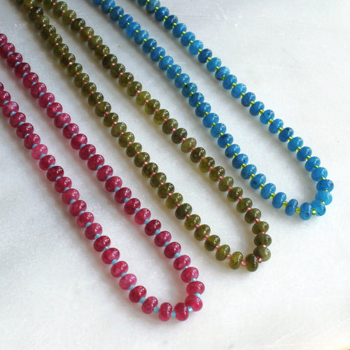 Explore our collection of handcrafted beaded necklaces featuring natural gemstones, stone candy beads, pearls, and playful color palettes. Whether you’re into minimalist strands or bold, statement pieces, each necklace is designed for layering and everyday wear. Perfect for adding texture, charm, and a pop of color to any outfit. Made in the desert, made to shine.