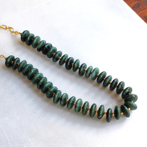 Gold Heart Pendant Necklace with Green & Gold Beaded Chain