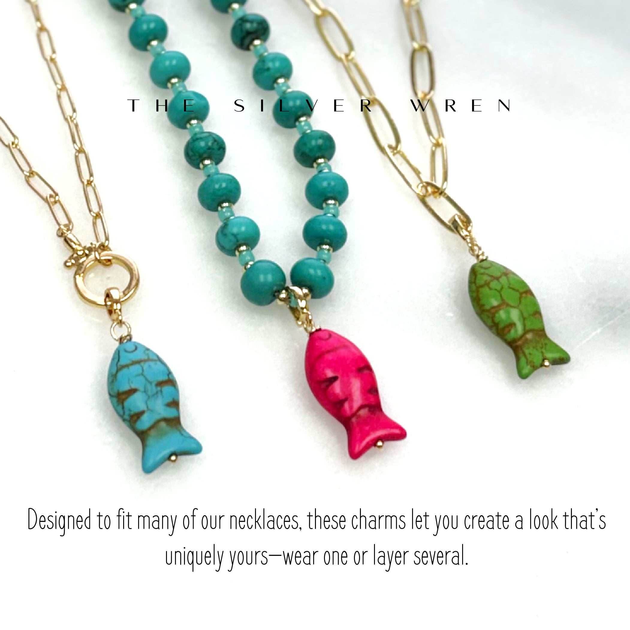 •Colorful magnesite fish wrapped by hand