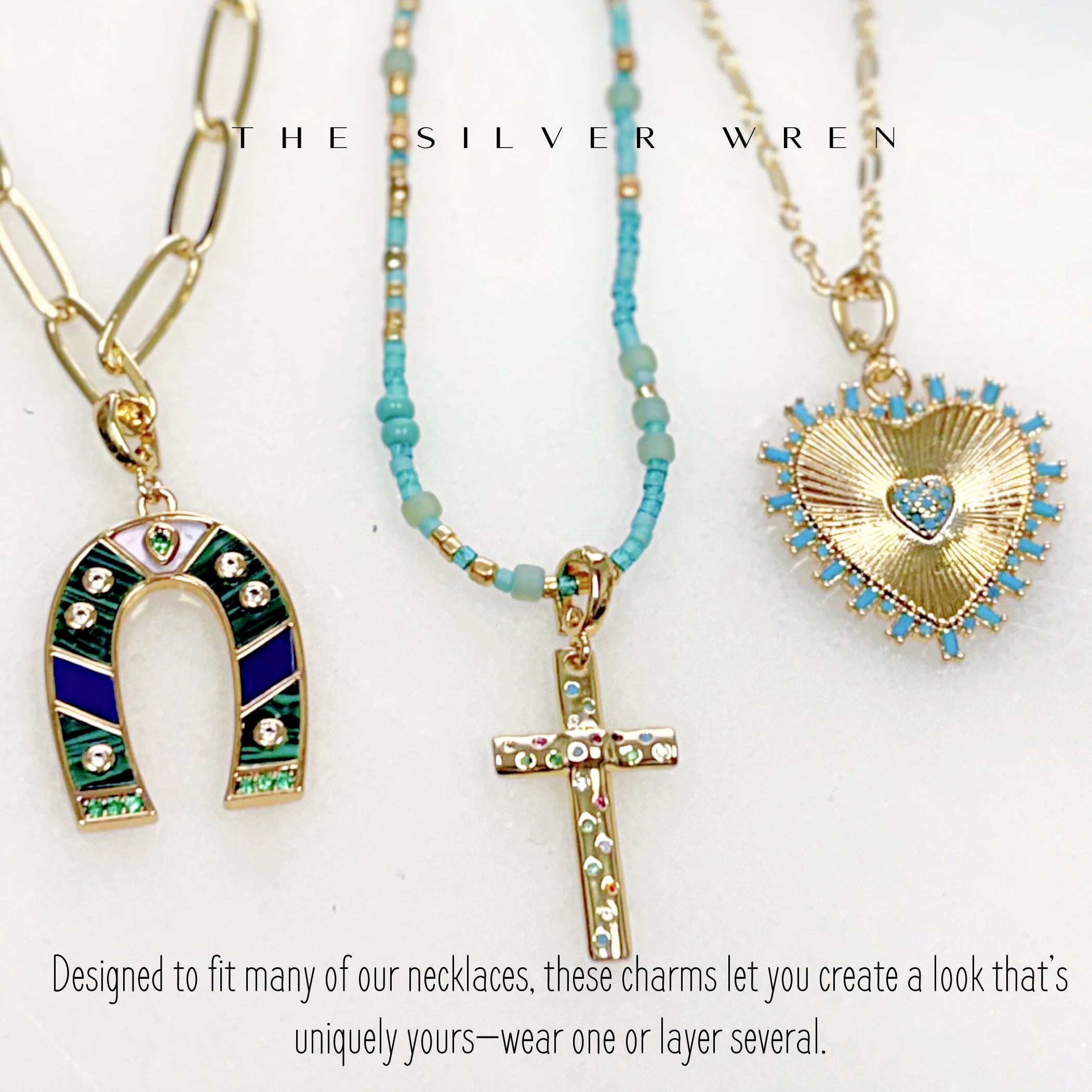Add a charm to your necklace or create your own design with your choice of our most popular charms. These charms have a clip on bail attached by hand to the top that is designed to fit our chains, candy necklaces and charm holder necklaces.