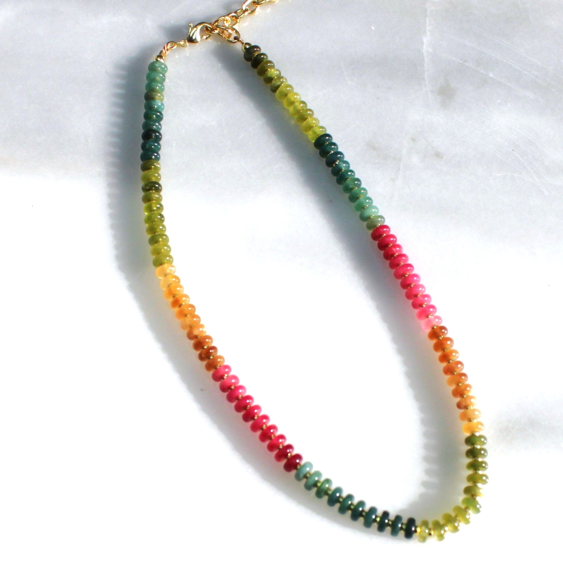 Sun-washed stones in desert hues are hand-strung into an easy, lived-in necklace made for everyday wear. Warm earth tones meet subtle color, capturing the feeling of open land, dusty roads, and long days under the desert sky.